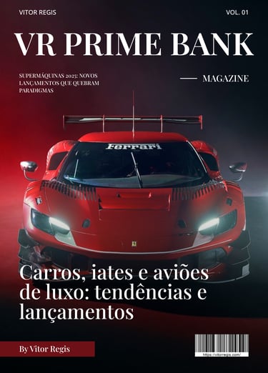 Esta edição da revista Vitor Regis explora o universo do luxo sobre rodas, mares e céus, apresentando carros, iates e aviões exclusivos, tendências e lançamentos. Mais que uma publicação, é uma experiência visual e sensorial, que traduz elegância, inovação e exclusividade em cada detalhe.